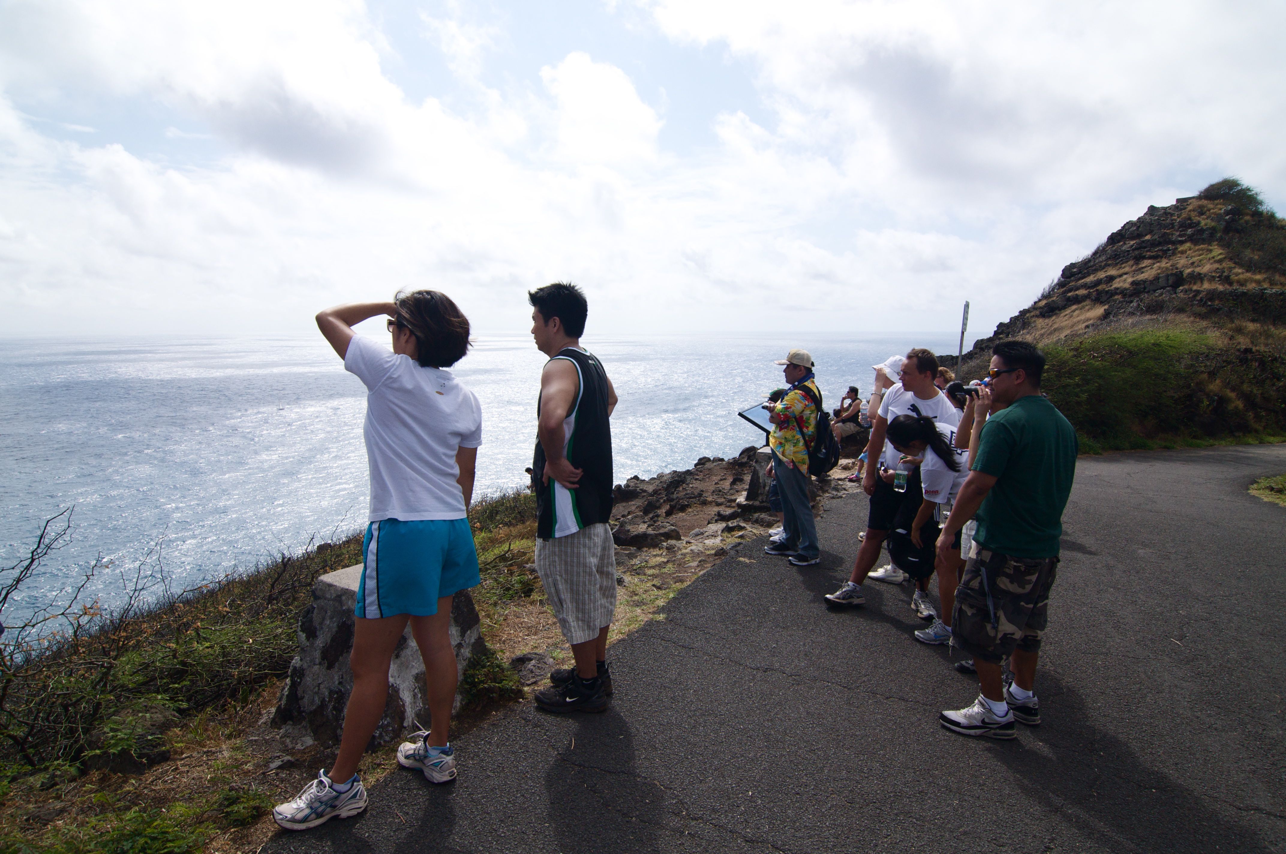 Fact of the day: male whales are called ‘bulls,’ females, ‘cows,’ and newborns, ‘calves.’ On Sunday, March 21st, 2010, nineteen JETAA Hawaii members, JET alumni, friends, and family witnessed some whale breaching, tail slapping, and blowhole spouting action from the Makapu‘u Lighthouse Trail. It was a sight for sore eyes!